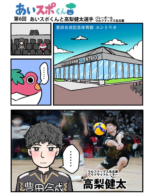 【#aispo!web】漫画 #あいスポくん🐸 第6回は #ウルフドッグス名古屋 の #高梨健太 選手が登場🏐 普段は寡黙な高梨選手ですが、ある話になると饒舌に⁉️ 🔽続きはこちら aichi-sports.jp/blog/manga_ind… @Wolfdogs_NAGOYA #バレーボール #Vリーグ #vleague #漫画 #マンガ #漫画が読めるハッシュタグ