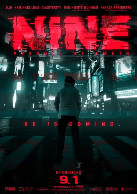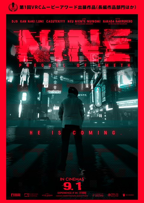 情報公開されましたので… 『NINE -PREQUEL OF EMETH-』 ロゴ作成を担当いたしました。 公開をお楽しみに! #NAKADINER2077 #ホテルカデシュ #VRC_NINE #VRChat twitter.com/nakadarariri/s…