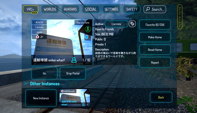もう夏が過ぎましたが、夏のワールドをlabsに上げました。ちょっと曇った午後に、ラジオで音楽を聴きながら海釣りが出来ます。 釣り竿は最大10本 ワールド名:遠鯨埠頭 onkei wharf #VRChatワールド紹介