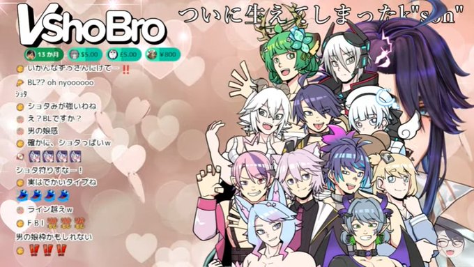 今回VShoBroの皆さんを描かせていただきましたー!!! 集合絵では隠れて見えておりませんが、多くの方は半裸です。 #VSHOBRO #ksonONAIR twitter.com/ksononair/stat…