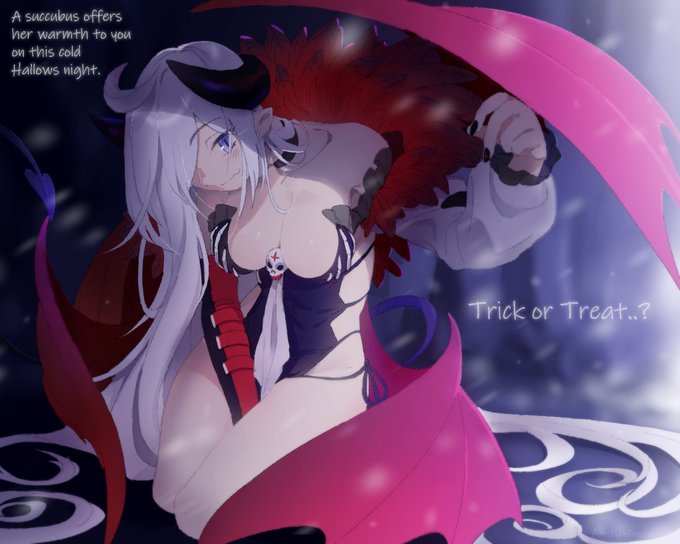 🖤A succubus offers her warmth to you on this cold Hallows night. Is this a Trick or Treat..? #VSJArtContest #VSJHalloweenArt #veibae