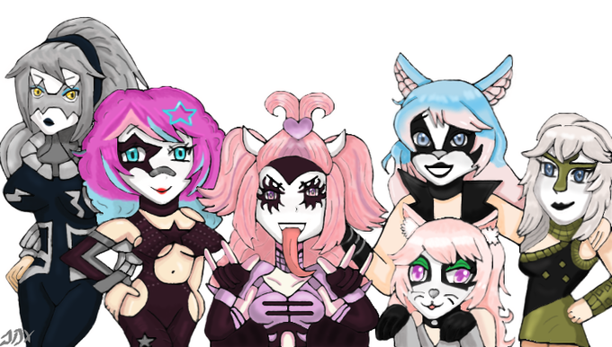 First art of 2023! Here, I have Vshojo members cosplaying my all time favorite band, Kiss.#vshojofanart #projectmelodyfanart #Doodlevale #nyanart #zentreart #ironmouseart #veibae #kissband