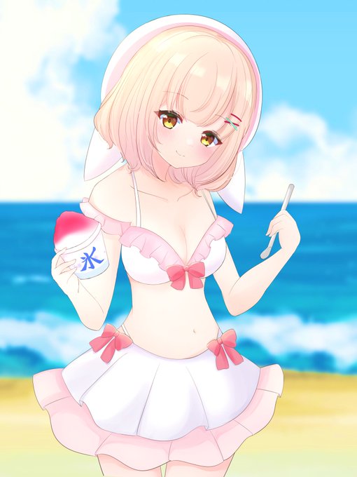 おはのんです❕今朝も配信ありがとうございました🌟 こちら海に行った時のオフショット載せときます〜!🐰🎀 昨日新作動画を投稿したのでよければたくさんきいてください🍧 ▶️youtu.be/NHahYRq_qTk 今日もがんばりましょう!✊🏻✨ #おはようVtuber #新人VTuber #VTuberアピール夏祭り #イラスト