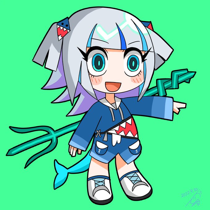 52日目 #100日チャレンジ ホロライブ「がうる・ぐら(@gawrgura )」ちゃんのファンアートを描いたよ~❗🐰🍀 #gawrt #GawrGura #VTuber #Vtuberさんと繋がりたい #VTuber好きと繋がりたい #カートゥーン風 #cartoon #CartoonArt