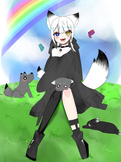 今日は良い天気だ〜❕🐺☀️虹も見えて最高の気分です❕🐺🌈 蒼輝に新しい狼の友達ができました(ᐢ ܸ. .ܸ ᐢ)՞ ՞🤍 また一緒にお散歩したいなぁ❕🐺✨ #VTuber #ド直球に言いますがフォローしてください #イラスト #新人Vtuberを発掘せよ #Vtuberを見つけ出せ #イラスト練習中 #VTuber始めました