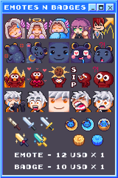 🐻 COMMISSIONS OPEN 🌙 Emotes — 12 USD x 1 Badges — 10 USD x 1 Panels — 8 USD x1 Sprites — 8~25 USD x1 ↬ DM me if interested ↬ payment upfront via PP ↬ RTs are appreciated #pixelart #vtubersupport #Vtuber #VTuberAssets #ENVtuber #PNGtubers #commissionopen #commission #twitch