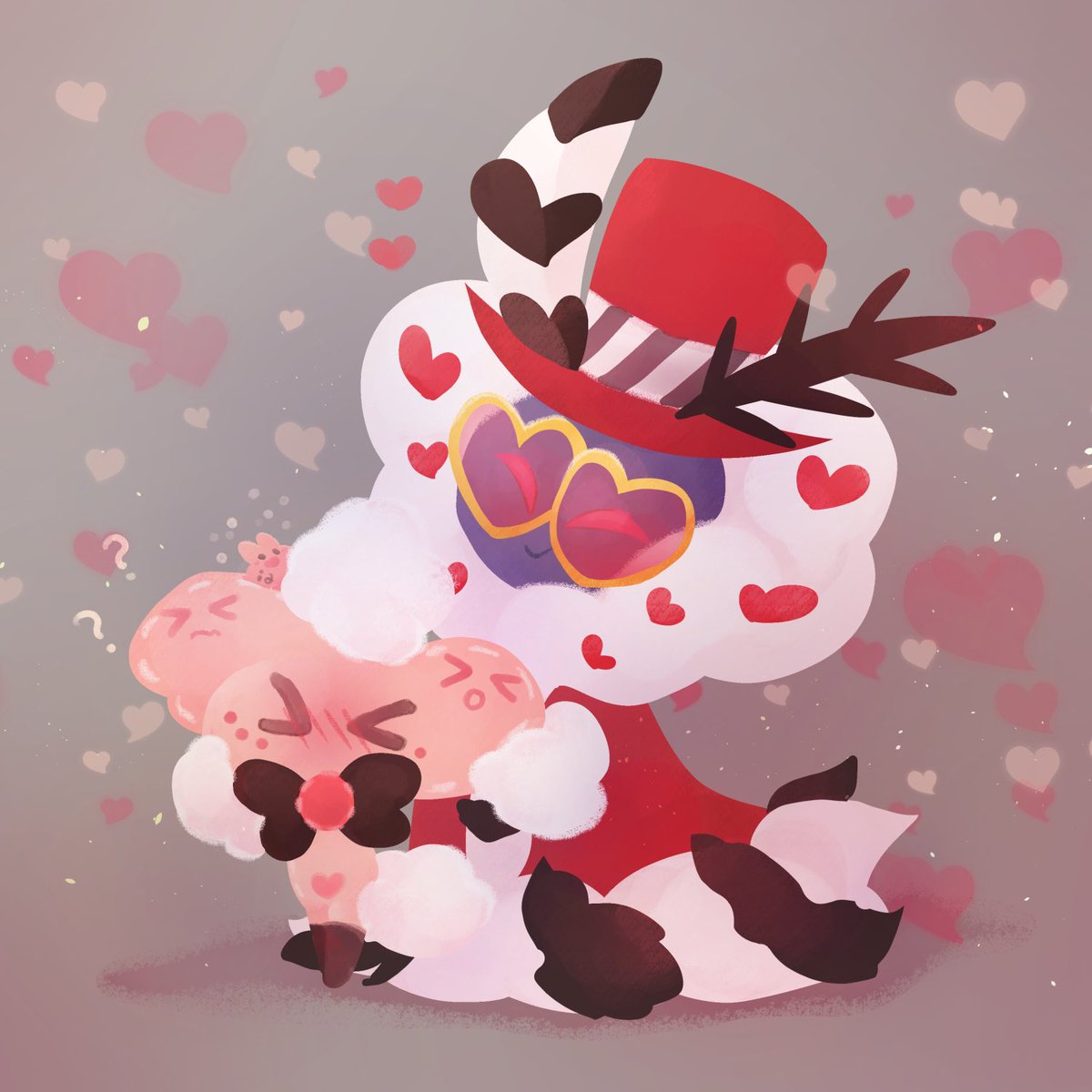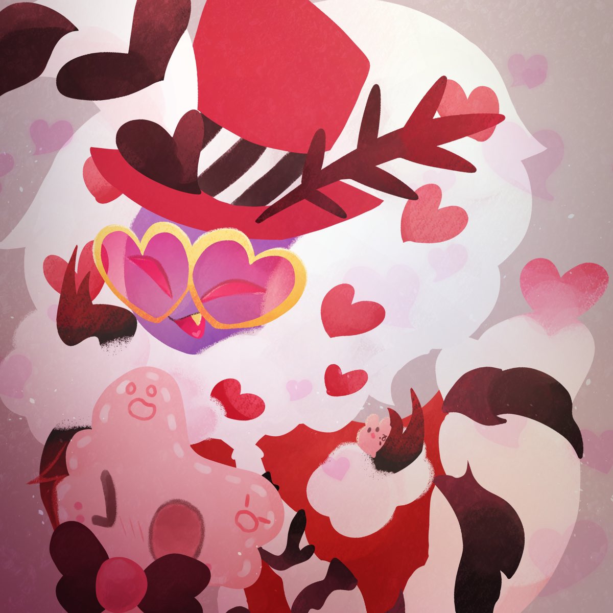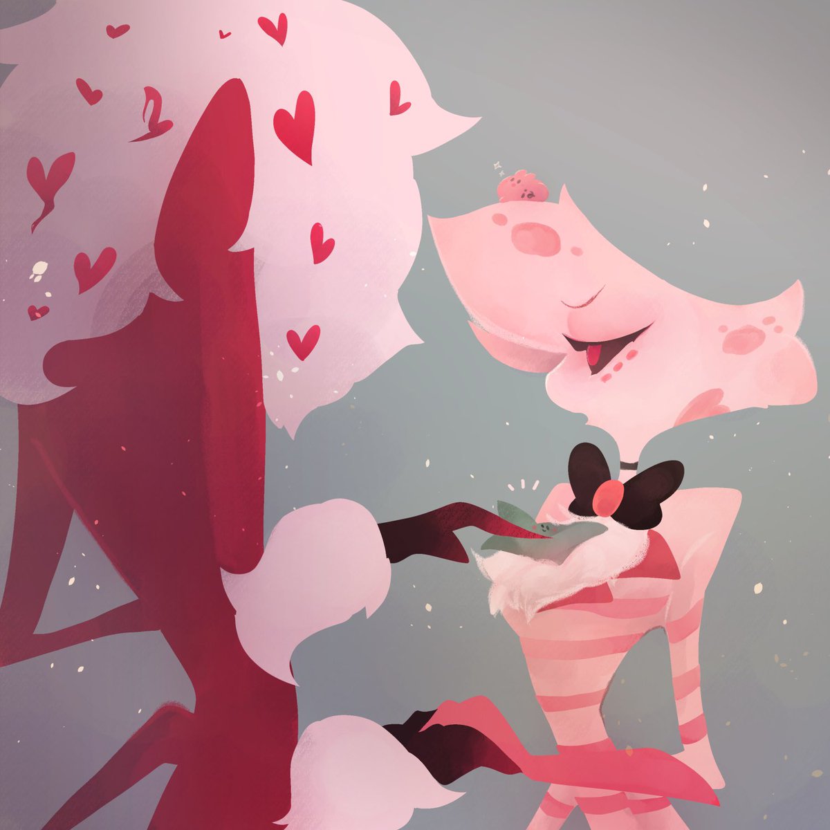 Here they are having fun too! 💕@HellaFanClndr 💕 #HazbinHotelFanart #HelluvaBossFanart #Valangel #FizzaRolli