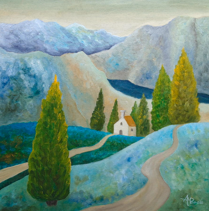 This is my painting "A Place To Stay". You can check it out here: fineartamerica.com/featured/a-pla… #art #arte #artlovers #kunst #искусство #艺术 #アート #repost #oilpainting #contemporaryart #ArtistOnTwitter #landscape #stripes #houses #village #trees #valley #mountains #oleo #artprints