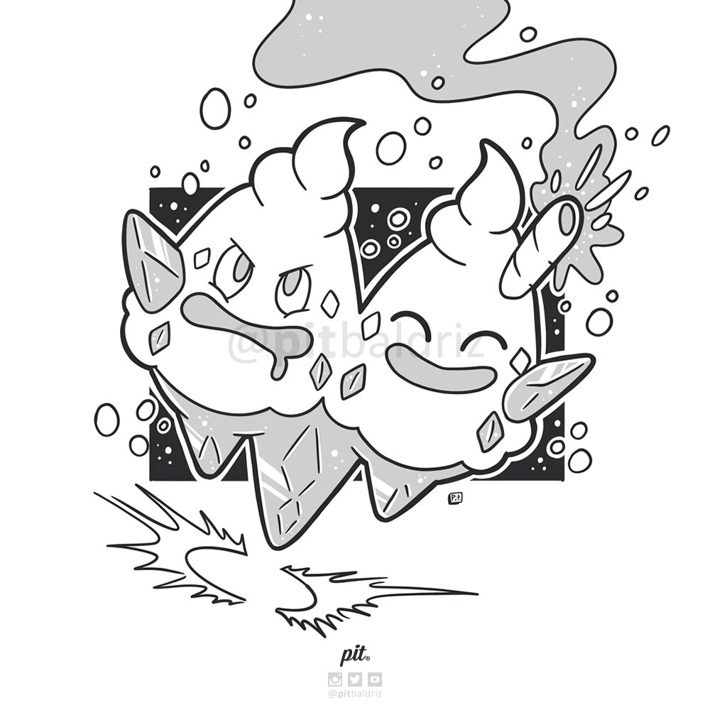 I love clever Pokemon designs! #Vanilluxe is one of them. Is so funny when all the snow from its heads melts looking bald! 😂 Day 11: SNOW - Vanilluxe 🍦🍦 #Inktober2019 #pattern #pitbaldriz #pokemon #icecream
