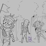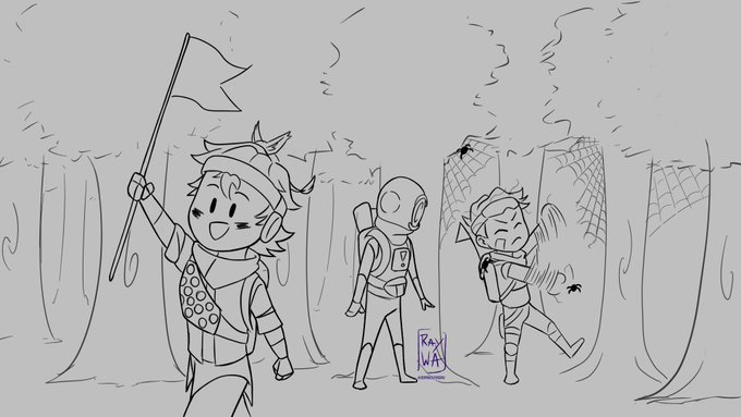 Day 7 - Trip These three being scouts... and one of them trying I just remembered Mirage in the season 11 launch trailer, I love how silly he was there (don't know how to do backgrounds) [#Vantage #Pathfinder #Mirage #ApexLegens #ApexLegendsFanart #Inktober #Intober2022]