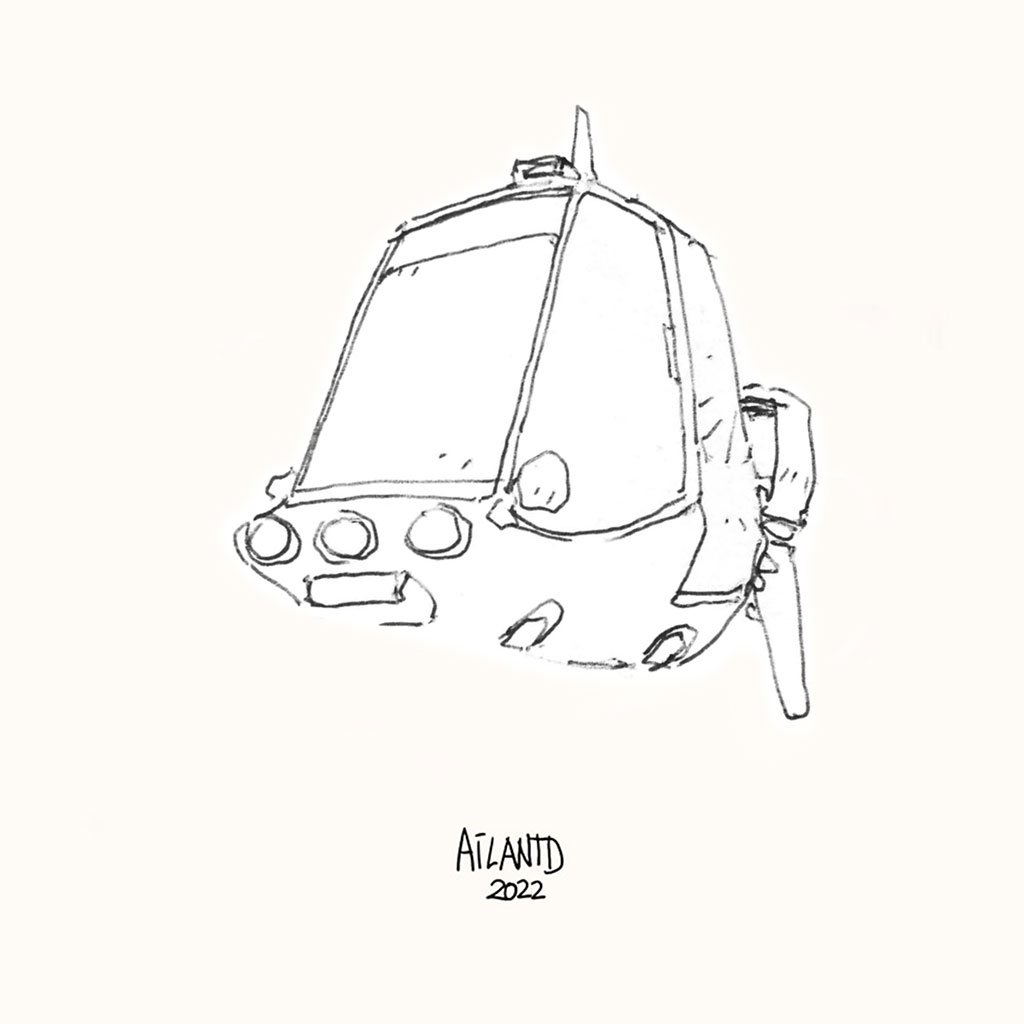 Some sort of flying #vehicle as little as it can be. Called the little for no reason, users need to kneel inside or risk a severe stiff neck condition. #Ballpoint #doodle with digital color overlay.
