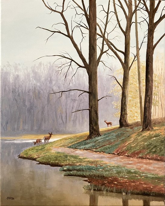 Finished 🎨 My painting is called “Deer in the early morning” #deer #forest #nature #NationalPark #Veluwe #oilpainting #art #artistontwitter