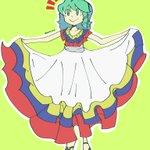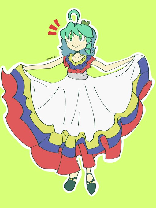 you can see my fanaticism for Sanae, right?, Btw, I made the drawing due to a dynamic in a Touhou discord server, which tries to draw your favorite girl with a typical costume of some country, I hope you like it 🐸🇻🇪💚 #東方Project #東風谷早苗 #fanart #touhouproject #venezuela