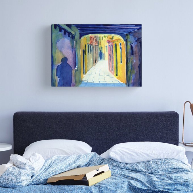 This old painting in my #Redbubble shop was inspired by "Don't Look Now" tinyurl.com/29zz87hh one of my favourite films. #SmallBusiness #GiftIdeas #WallArt #Painting #Venice #StreetScene #Decor #Decoration #Posters #CanvasPrint #PhotgraphicPrint