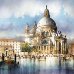 Venice - "An orange gem resting on a blue glass plate" – Henry James #venice #italy #watercolor #art #architecture "Floating City"