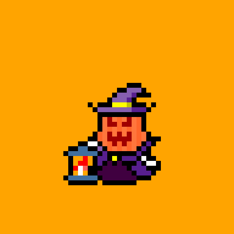 VeryLongFantasy連続リリース91日目、 No.124「ベビージャックランタン」をリリースしました!🦊 ■Opensea opensea.io/assets/matic/0… お菓子は山吹色のものが好みだそうです🦊 #veryLongFantasy #ドット絵 #Pixelart #veryLongAnimals