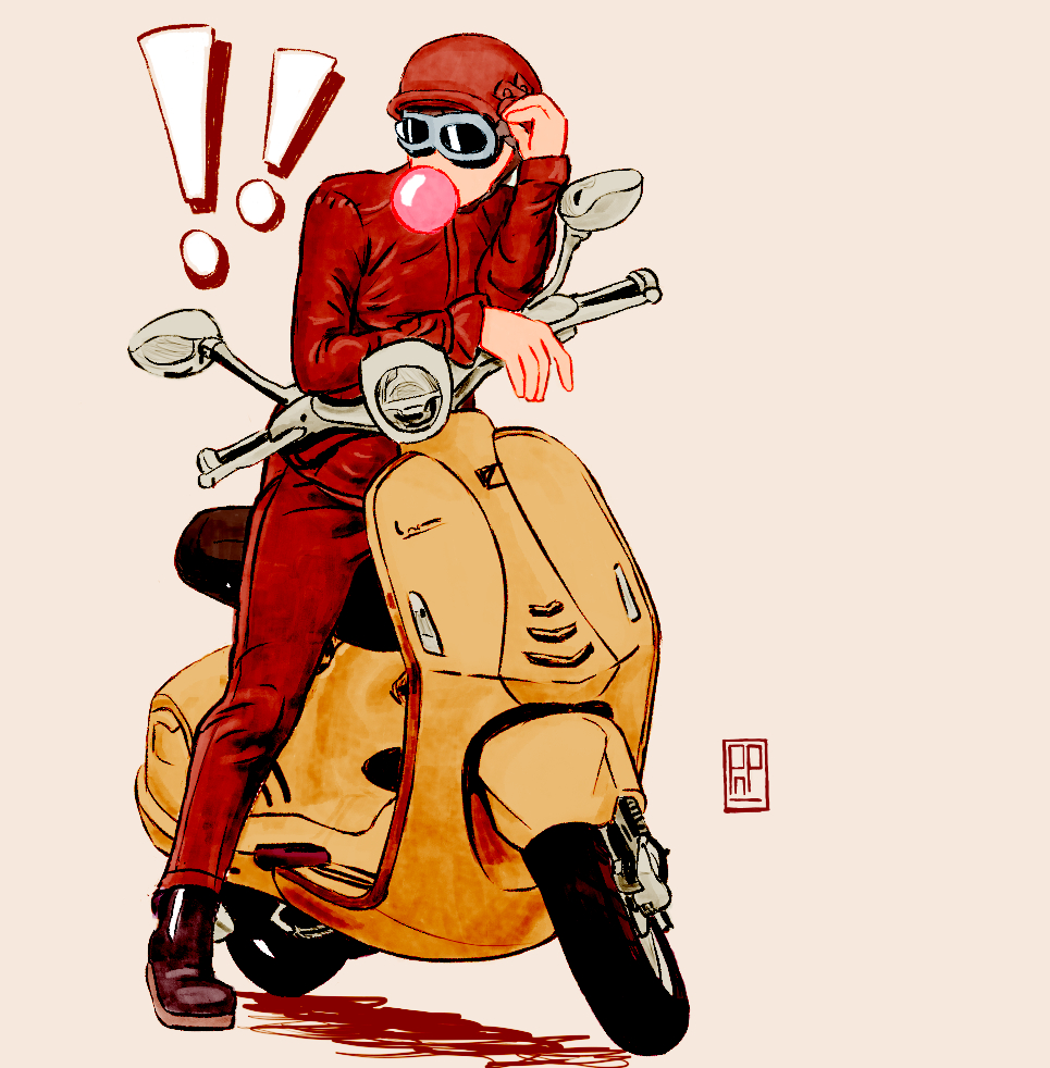More stuff with Canti, featuring cat and vespa #flcl #foolycooly #anime #manga #fanart #canti #robot #tvboy #cat #vespa #scooter #vespasupersport180 #dramatic #blackcat #haruharaharuko #digitalart