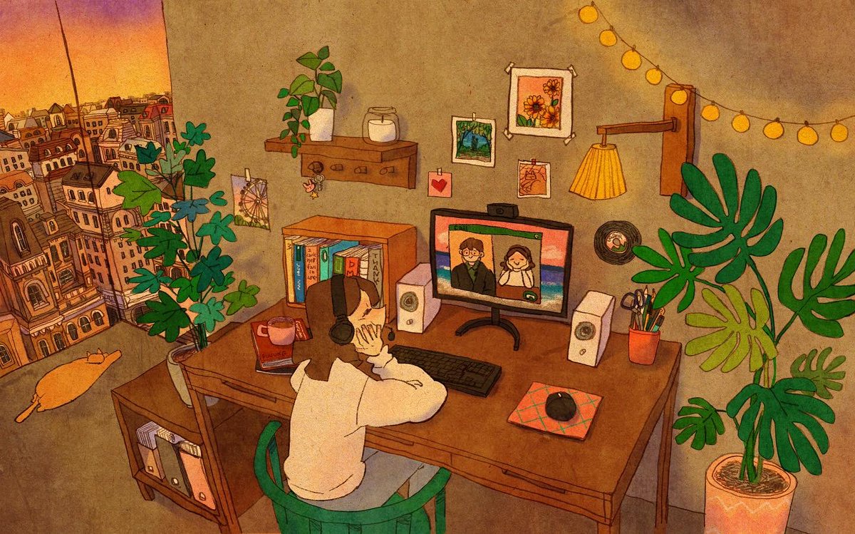 The videocall with him linktr.ee/puuung1 #videocall #illustration #couple #sliceoflife #coupleinlove #couplelife