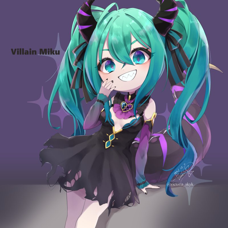 ヴィランミク🖊️✨ TLで見かけて一目惚れ…描いてみました🖊️ #イラスト #illustration #初音ミク #ヴィランミク #HatsuneMiku #VillainMiku #デフォルメ