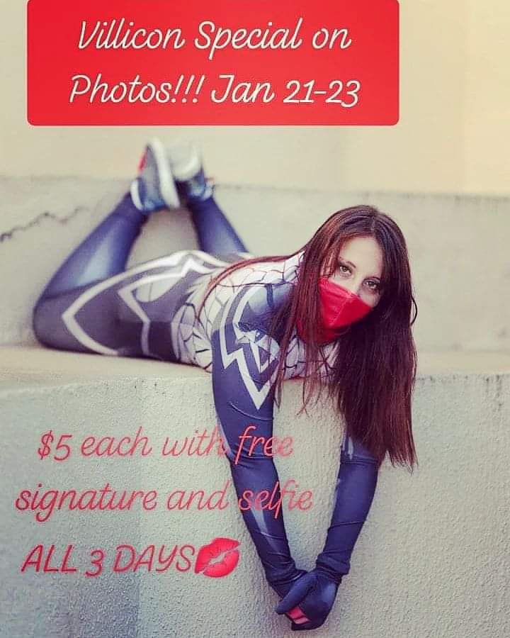 My price for photos at my booth are posted. It's my @villicon special. I have a larger selection this year. So make sure you come to my booth 134 during the event. @villicon is January 21-23. See you there. 💋💋 #villicon #villicon2022 #villiconorlando #villicon💀 #fyp #cosplay