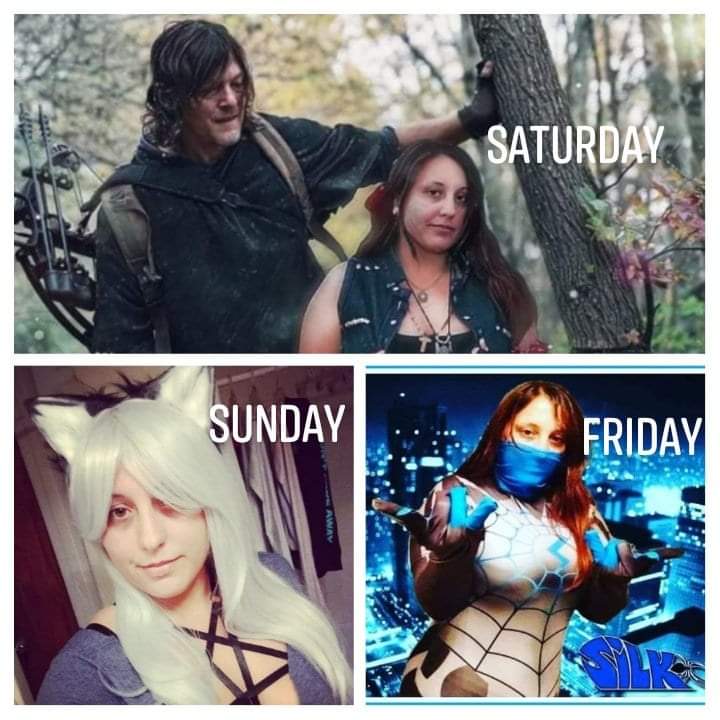 Cosplay line up for @villicon this weekend is set. Friday- Cindy Moon aka Silk from @SpiderMan Saturday- Darla Dixon, my @WalkingDead_AMC oc and daryl's missing wife. Sunday- Loona the Hellhound from @IMPmurderpros . #villicon #villicon2022 #cosplay #cosplayer #fyp #foryou