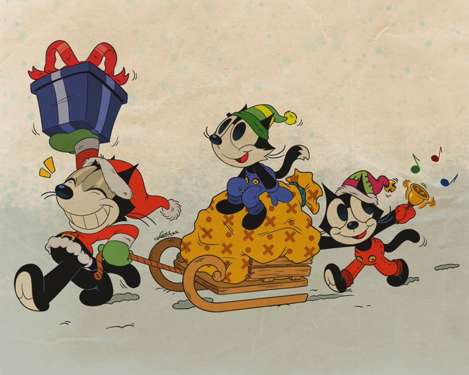Santa and his little helpers! #FelixtheCat #felix #christmas #cartoon #classic #art #digital #illustration #vintage