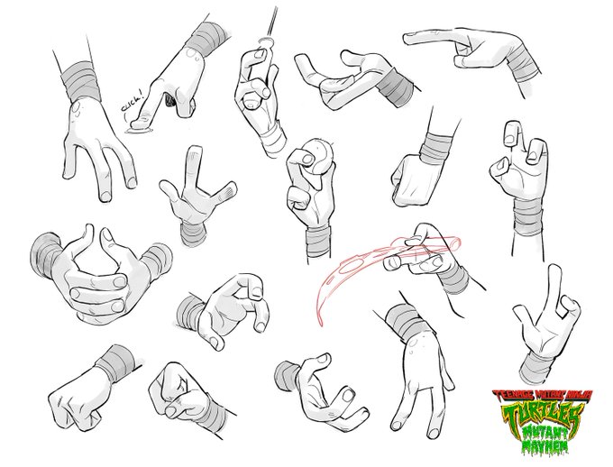If anyone is looking for references on how to draw three fingered hands, please enjoy. A bach of hand studies I did for #MutantMayhem to serve as reference for modellers, riggers, animators and designers. #tmnt #hands #aniation #visualdevelopment