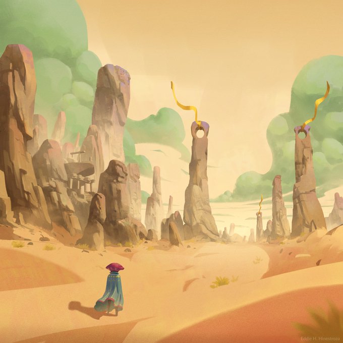 Random painting, I got a little inspired by midjourney and wanted to do something "quick" #illustration #environment #journey #traveler #explorer #ghibli #desert #alien #conceptart #digitalart #visualdevelopment