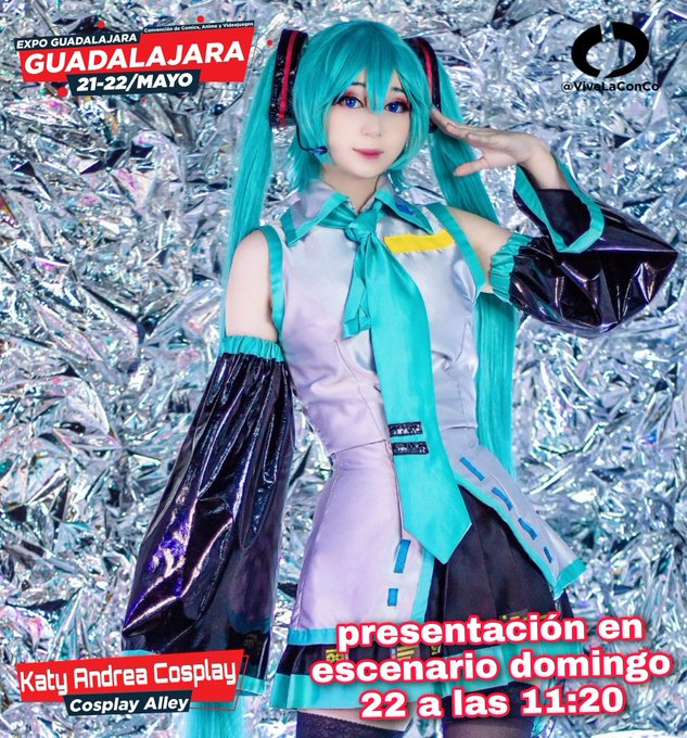 🎉🎉 Sorpresa!! 🎉🎉 Nos vemos en la @vivelaconco Guadalajara este próximo 21 y 22 de mayo en expo Guadalajara! El día domingo a las 11:20 AM tendré una presentación en escenario 😱💖💖así que te estaré esperando 🎉✨💖💖 #mikucosplay #cosplay #vivelaconco #vocaloid #miku
