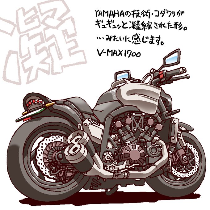 アメリカン?ツアラー?ドラッガー? そのどれにも当てはめられない。 それはYAMAHAが生んだ鉄のカタマリ。 #イラスト #お絵描き #絵 #バイク #bike #bikeillustration #girlsillustration #yamaha #vmax #vmax1700 #illustration #art