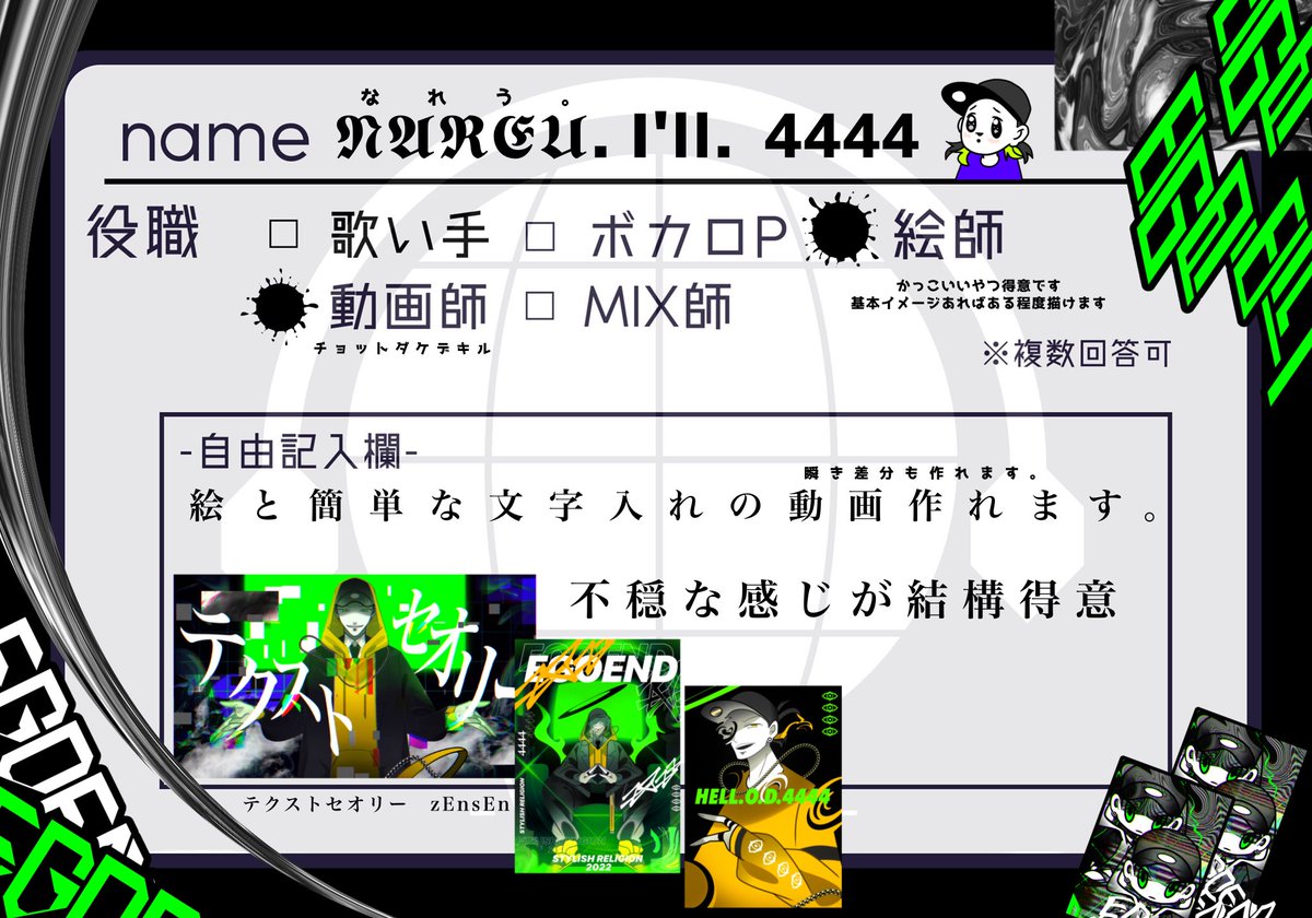 絵かいたり映像作ったりアニメ作ったりすることが好きです🥰気になる木なお方とチーム組みたいです👐何卒よろしくお願いいたします🙇♂️ #ボカデュオ #VocaDuo #歌い手さんMIX師さん動画師さん絵師さんPさんと繋がりたい