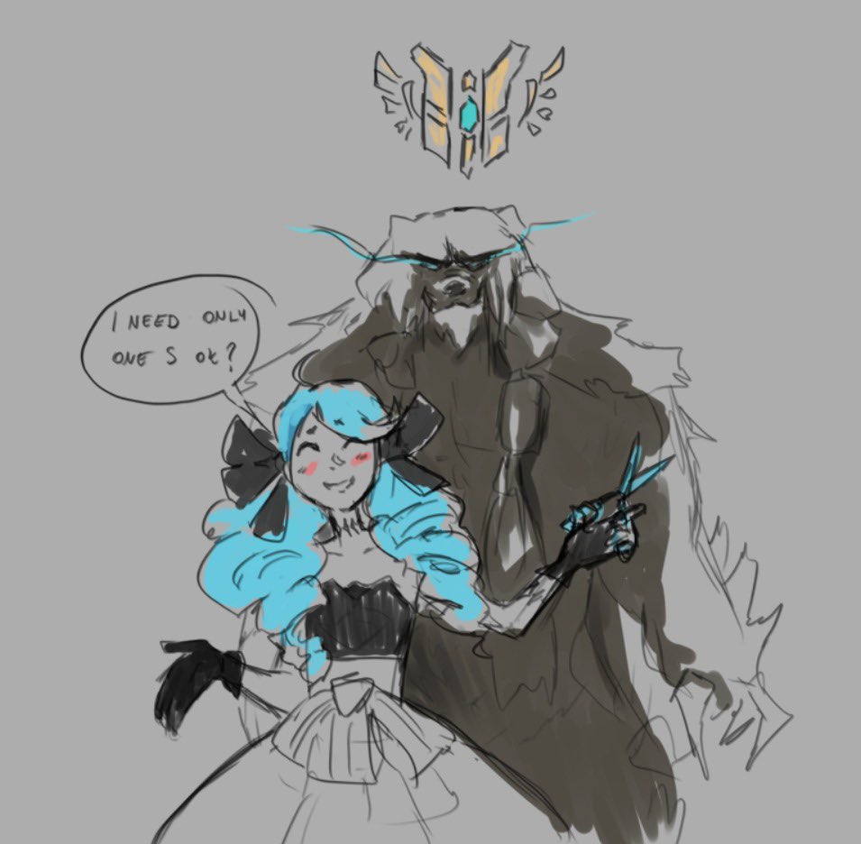 Late night doodle of my bf carrying me for the last token Gwen M7 🥺 #ArtofLegends #gwen #volibear