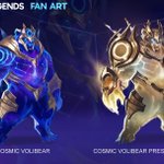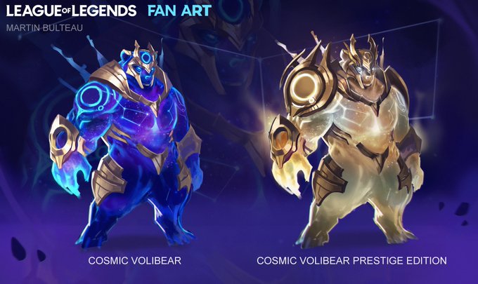 I really wanted to participate in this year's #Skintober, and finally found the time this weekend to create not one but two skin ! Please welcome Cosmic Volibear and his Prestige Edition counterpart 🐻✨ ! #LeagueOfLegendsFanArt #LeagueOfLegends #volibear