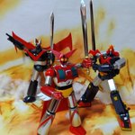 #夜のフィギュア撮影会 お題「フリー」 刀を3本揃えるとカッコ良いかな🤔?…と思って撮ってみました😄 あまり変わりませんね😇 #GreatMazinger #VoltesV #GetterRobo