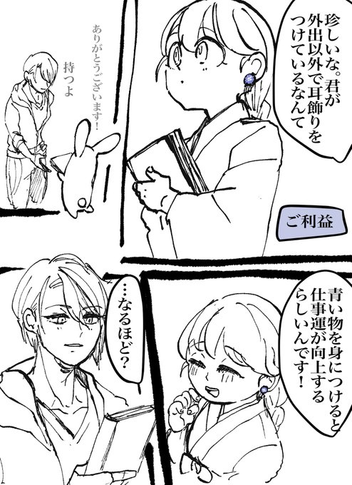 #W山姥切と女審神者版60分一本勝負 開催ありがとうございます! あけましておめでとうございます🌸 15分オーバーしてます。毎度すいません 長義さに 「ご利益」 青い物を身に付けて仕事運向上を願う審神者さんです