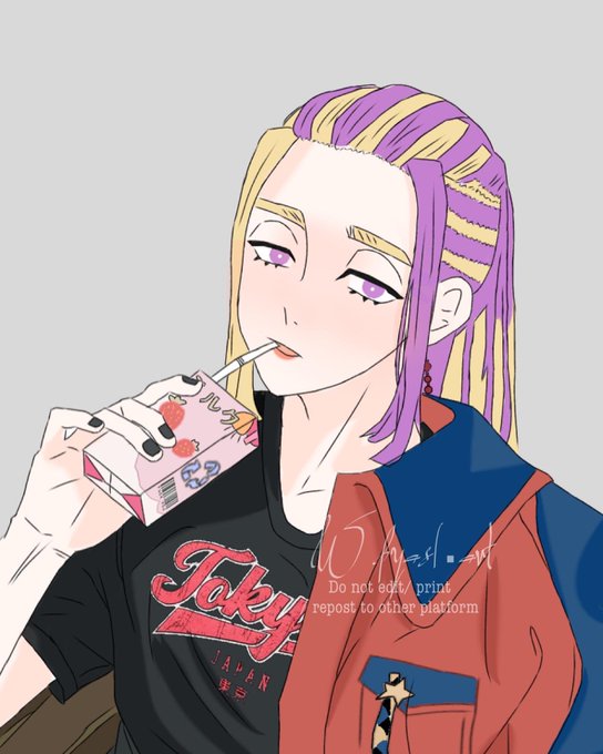 Вака рисовался специально для @\SpenserBlack для косплей дефиле О.О Давайте пожелаем ей удачи на выступлении!!! 😳🤲💜💜💜 p.s. мне так нравится, какой булочкой он здесь получился, жаль не удается повторить этот же стиль 🤧 #tokyorevengers #東卍FA #tokrev #wakasa #wakasaimaushi