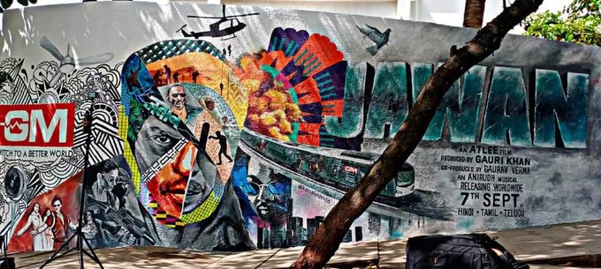 A Beautiful #Jawan Art in front of #Mannat. Jawan Promotion is ON!🔥 Art by @Iam_SyedIrfan , @GMModular Have a Look @iamsrk , @RedChilliesEnt , @Atlee_dir , @anirudhofficial , @VijaySethuOffl ... #JawanFanArt @SRKCHENNAIFC #Jawan7thSeptember2023 #SRKNadiaCFC #SRKCFC #WallArt