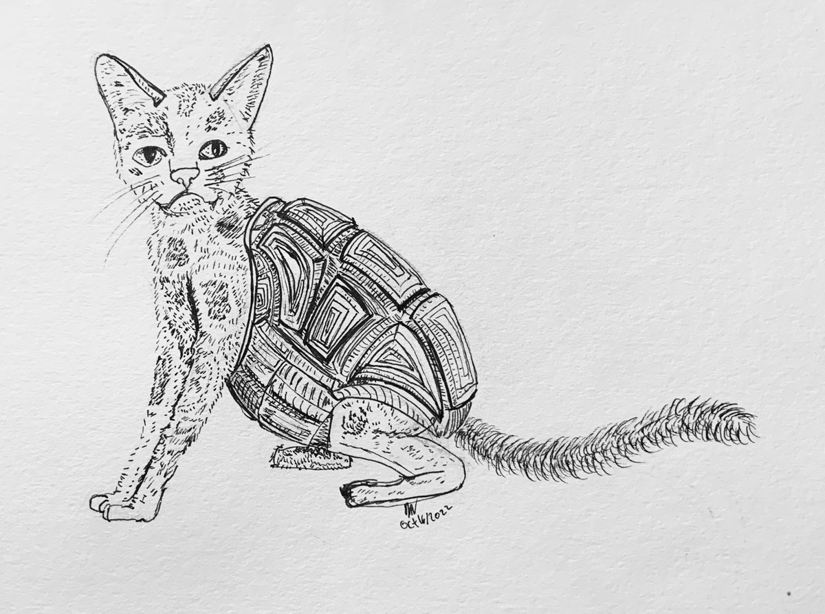 Todays inky creature is very puny. :) The tortoise shell cat. #nft #nftart #nftartist #inktober2022 #inktober #waxp Thank you to those who bought an inky pass. Hope you like kitty.