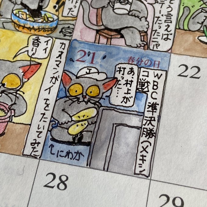WBC観戦(メキシコ戦) #WBC #WBCメキシコ戦 #水彩画 #手帳 #トラベラーズノート #猫 #スケッチジャーナル #マンスリージャーナル #絵 #イラスト #イラスト好きな人と繋がりたい #絵描きさんと繋がりたい