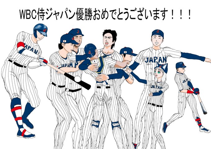 WBC侍ジャパン優勝おめでとうございます!色を塗ってみました…今回…自分は野球が本当に…好きなんだな…と再認識しました…スポーツ漫画はあまり…描きたいとは思いませんでしたが…描くなら野球一択ですね…#みんなで楽しむTwitter展覧会 #WBC侍ジャパン