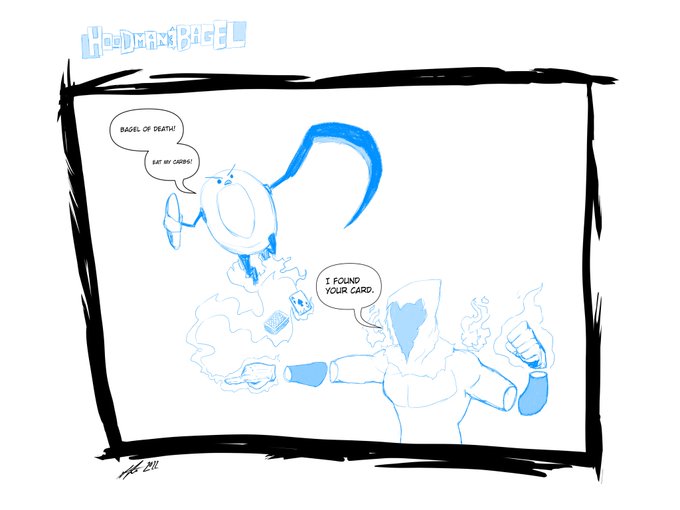 Hoodman & Bagel. I'm working on this. #art #artvsartist2022 #artistsoftwitter #ArtistOnTwitter #artist #artwork #hoodmanANDbagel #comic #webtoons #webtoon