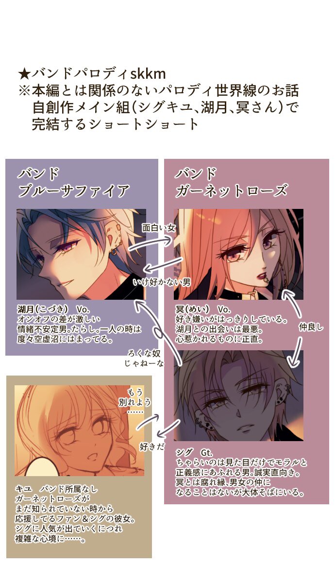 #漫画がよめるハッシュタグ #創作男女 #webtoons バンパロskkm、初話清書しました〜! 色々分散してたのでまとめます😉 1ツイートで完結するショートショートシリーズ🎧 ①たらしなバンドマン湖月×鋼防御な冥さん(と、顔だけは強いシグシグ)