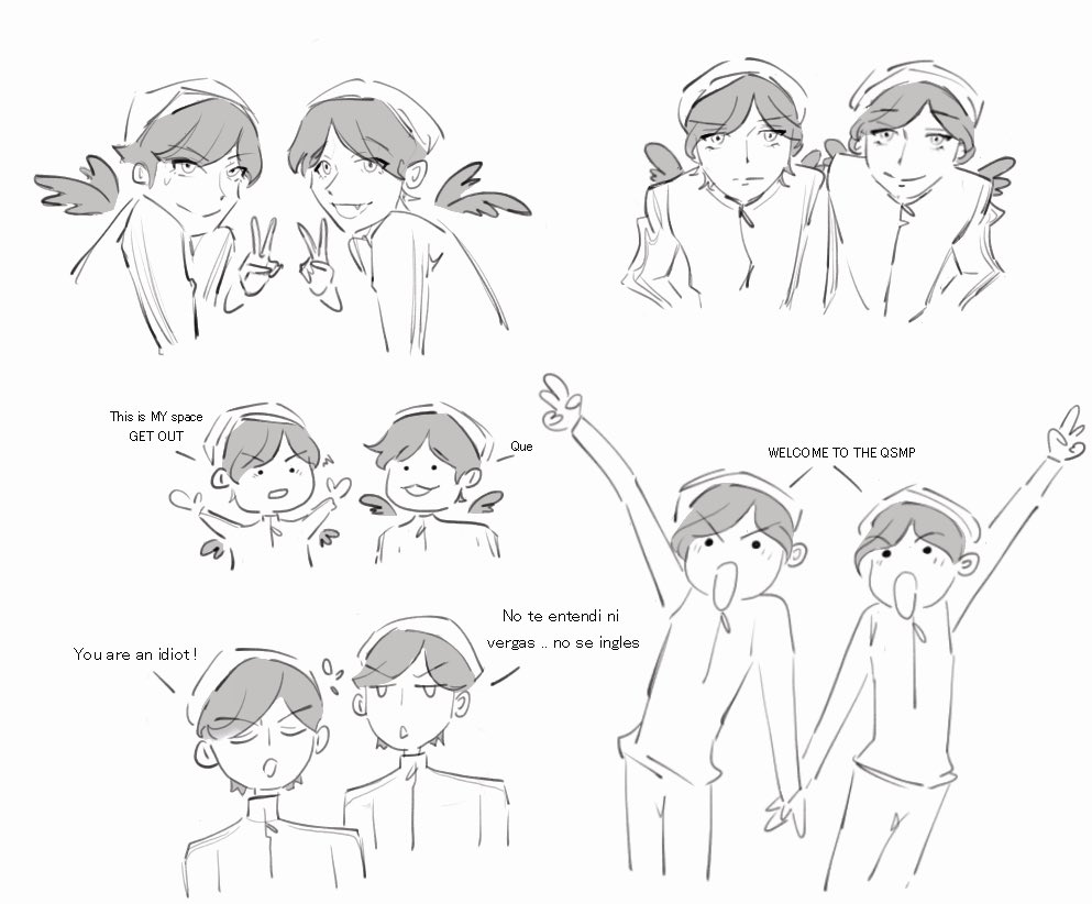 Sketches of Quackity in QSMP (inspiration from the Hitachiin Twins in OHSHC) *Dibujitos del Lic en QSMP* (Left is Big Q and right is el Lic) #WELCOMETOTHEQSMP #QSMP #QSMPfanart #quackityfanart #quackity #OuranHighSchoolHostClub #QUACKITY #quackitytoo