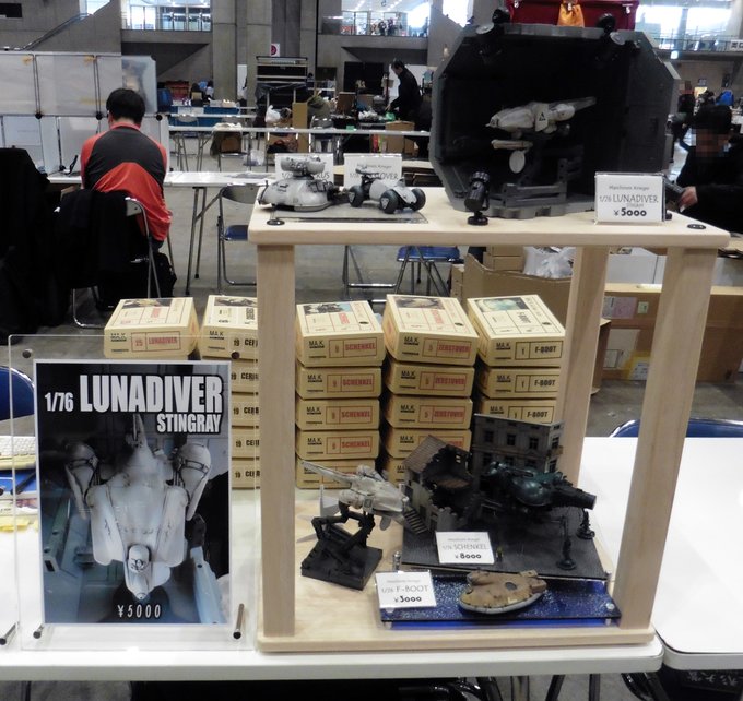 ワンダーフェスティバル2018冬。 ブース上の展示の写真。 もう4年も前かぁ。 この時の新作はルナダイバーだった。 今度のWFでの新作はファイアボールなので、ルナダイバーと並べて販売しても良いかもなぁ。 #模型フォルダからランダムに過去の写真を掲載する #WF2018W #マシーネンクリーガー