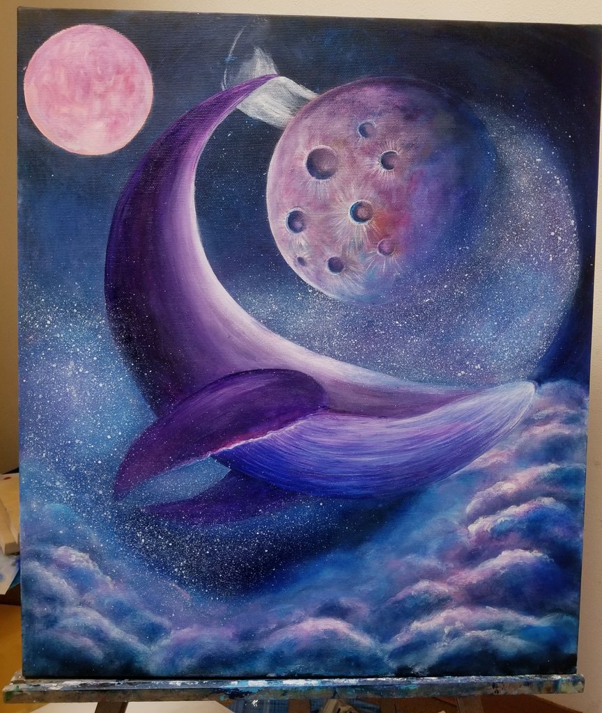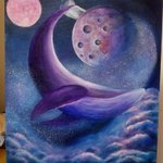 Day 29 ~ Whale. Prompt from #peachtober22 Took everything I could not to paint Whale Fly. So instead I painted a whale... in a flying cube of water.😂🐋 #peachtober #inktober #gouache #acrylicgouache #whale #whales