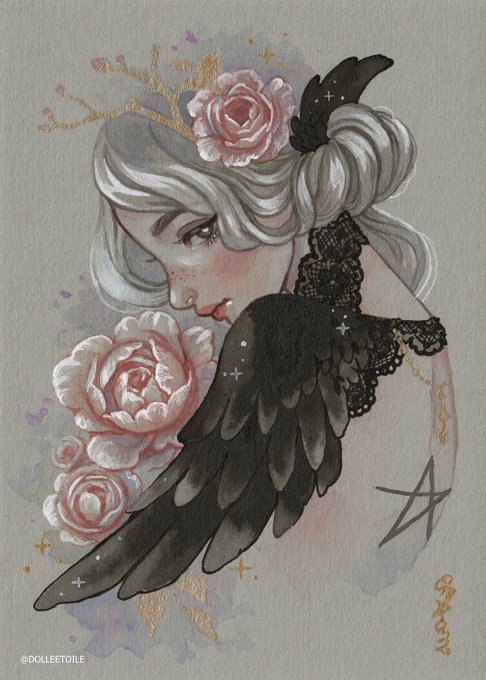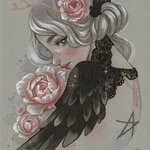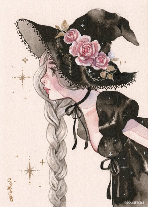 Curiosity Materials: Black Ink, watercolors, white gouache, and gold mica on 300 gsm paper #watercolor #witch