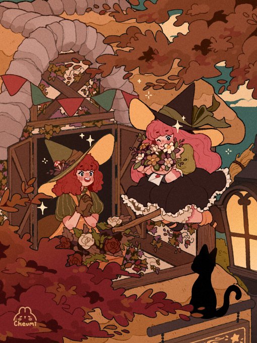 Happy Halloween! 🪄🎃 (i didn't manage to make more art so here are the cute witches again!) 😭 I hope you enjoy them anyway!! ♥️ #fairytail #fairytail100yearQuest #erza #erzascarlet #irenebelserion #Halloween2022 #witchtober