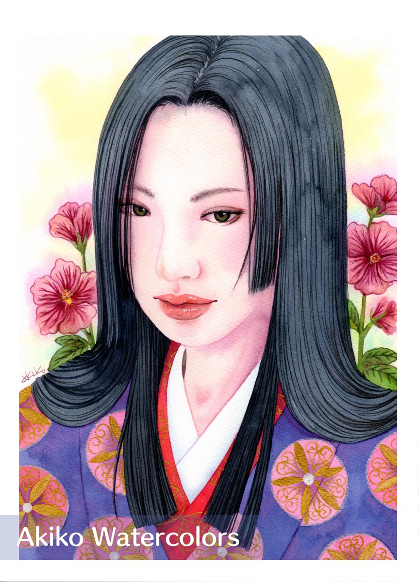 お題がないとなかなかオリジナルを描かない無精者が源氏物語に登場する女御たちを順に描いていくシリーズ3の途中。 六条御息所。プライドと抑えきれない情念の狭間で。 #源氏物語の女御たち #六条御息所 #水彩画 #WN #watercolor #美人画