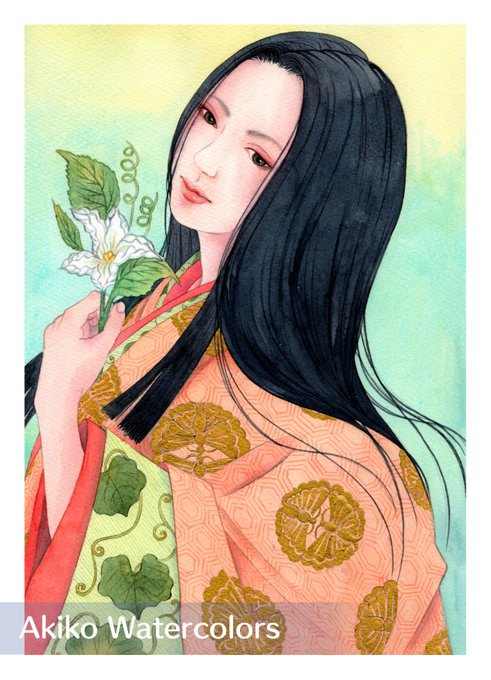 お題がないとなかなかオリジナルを描かない無精者が、源氏物語に登場する女御たちを順に描いていくシリーズ2。 夕顔のかわいらしさと儚さと。 #源氏物語の女御たち #夕顔 #水彩画 #WN #watercolor #美人画