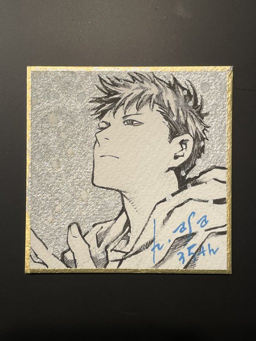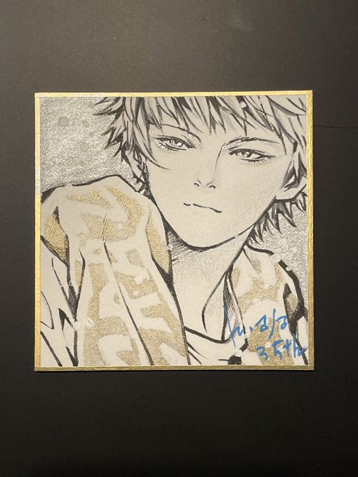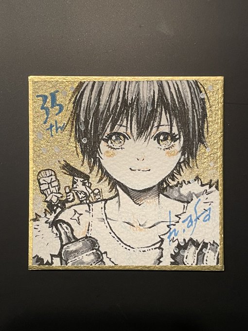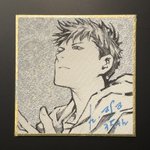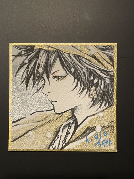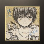 #浅田弘幸画業35周年記念展 #少年の歌 ミニ色紙描いてます。今回は個展グッズでコラボさせていただいている、素敵過ぎる英国ウィンザー&ニュートンの金と銀のドローイングインクで。 角度によって見え方が違います。楽しい♪( ´◡` ) #ウィンザーアンドニュートン #WN